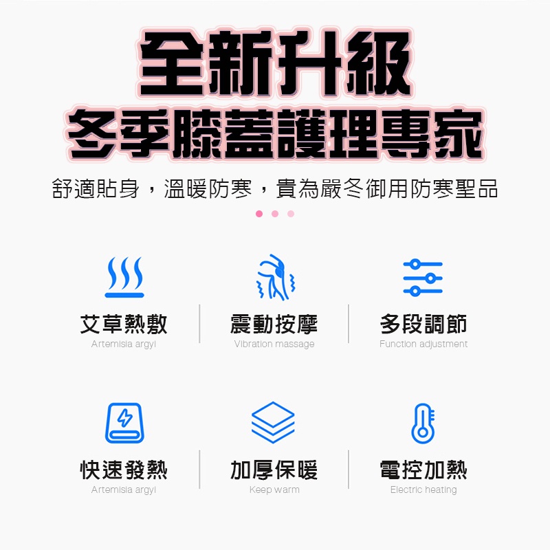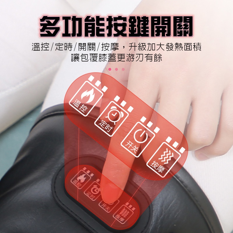迅速發熱、溫度控制、膝蓋按摩、智能調節、定時開關、按摩選擇