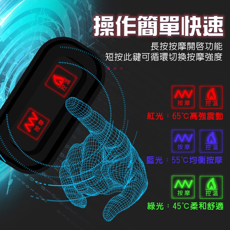 ●可按摩、溫控、熱敷、定時,操作簡單快速發熱●